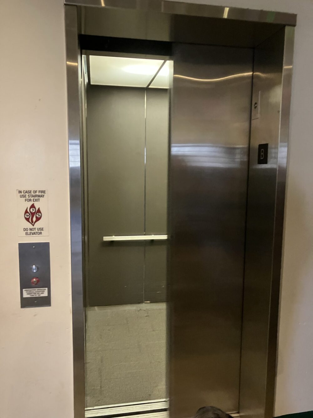 音声ガイド受け取り後、通常は階段をのぼりますが、ベビーカーだったので階段のすぐ横のエレベーターに案内してくれました。